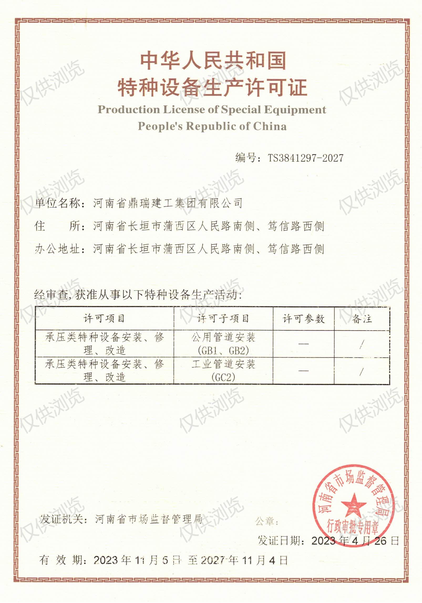 鼎瑞擁有完備資質
